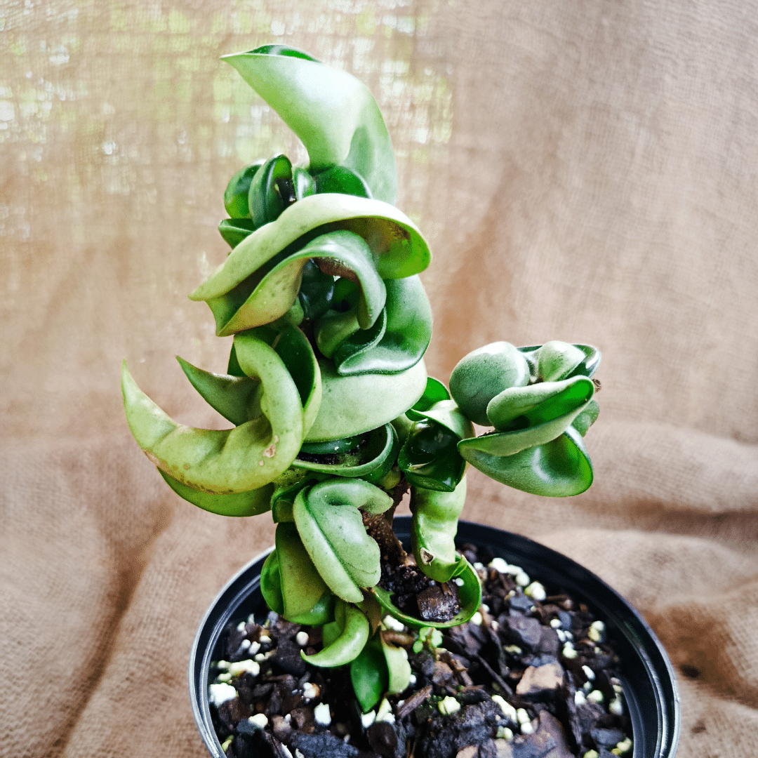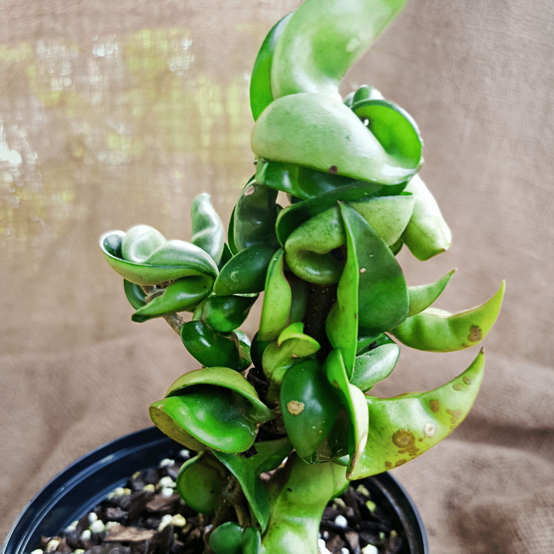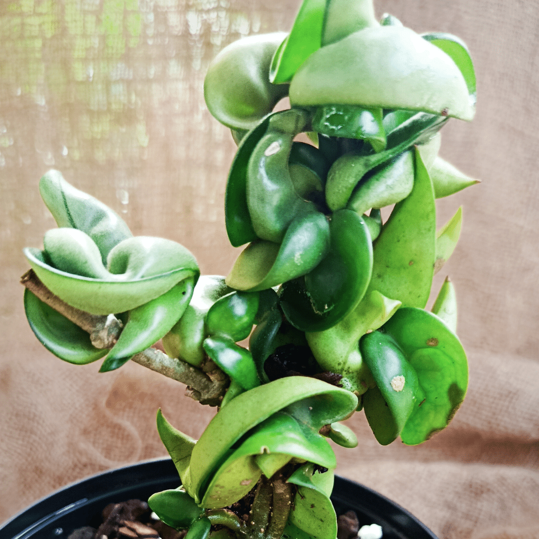 Hoya Compacta, often referred to as the “Curly-leafed Wax Plant,” is a stunning and unique member of the Hoya family. This trailing plant is known for its distinctive, thick, waxy, curled leaves that create a lush, cascading effect. In addition to its beautiful foliage, Hoya Compacta produces fragrant, star-shaped flowers that bloom in clusters, adding a touch of elegance to any space. This low-maintenance, hardy plant thrives in indoor environments and is perfect for both beginners and experienced gardeners. It prefers bright, indirect light and well-draining soil, making it an ideal choice for hanging baskets or as a cascading indoor plant. Hoya Compacta is a great addition to any home or office, offering a unique, aromatic atmosphere with its long-lasting blooms.