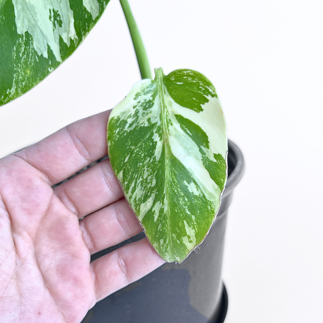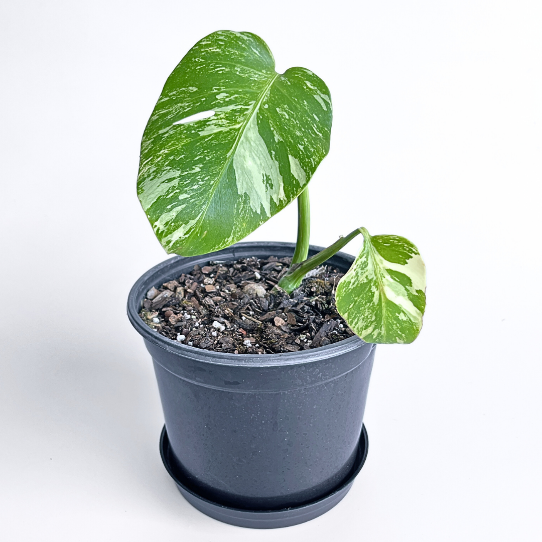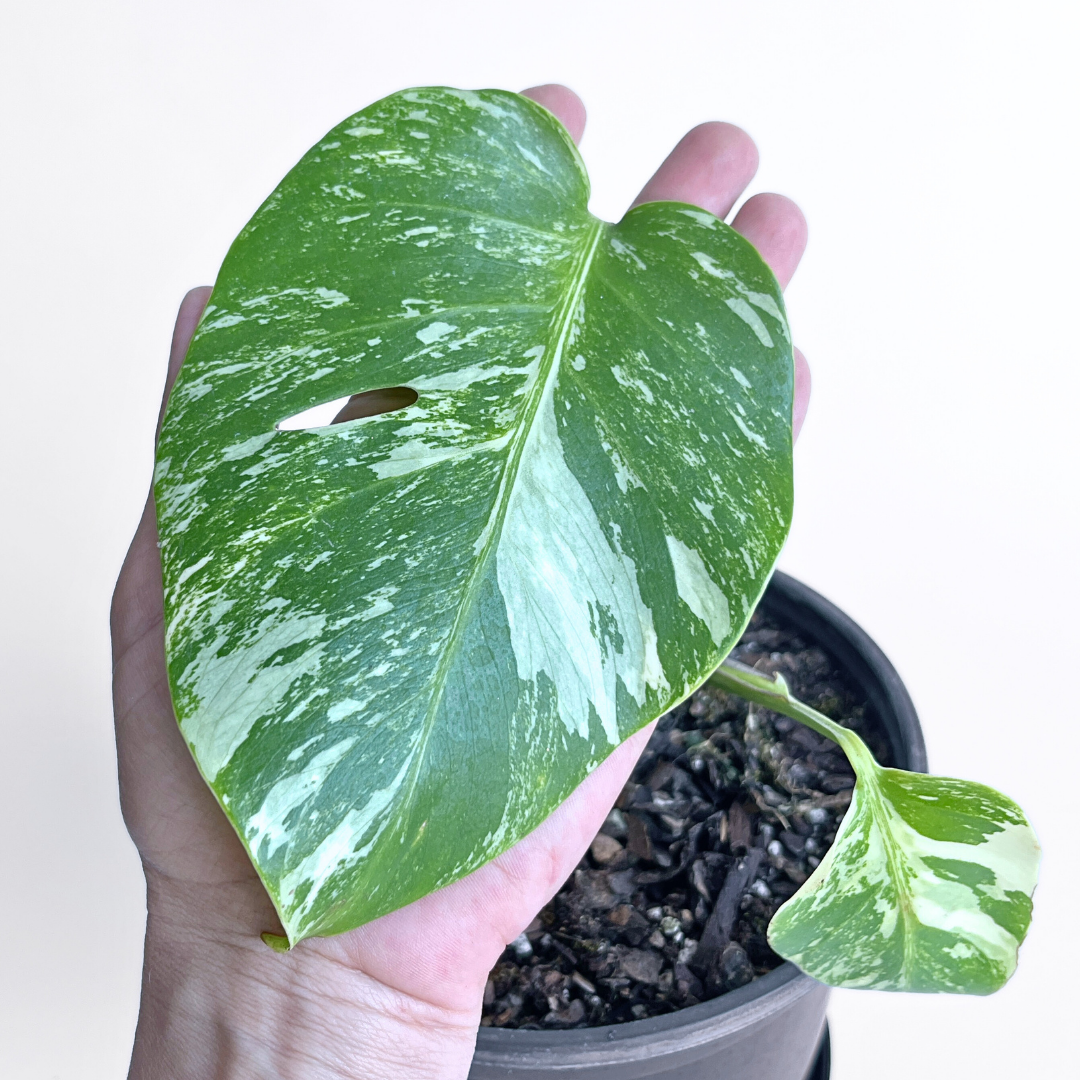 Monstera Albo Variegata Plant 7 | 2 leaves | Rare Variegated Swiss Cheese Plant | Indoor Houseplant